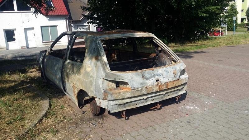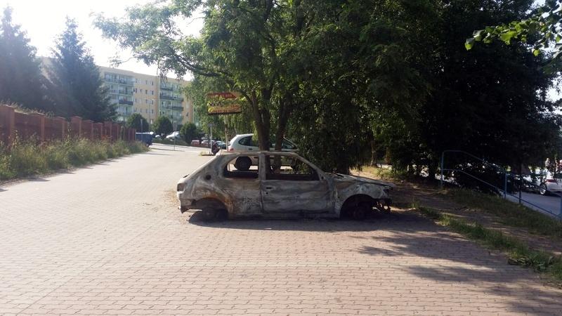 Auto stoi "zaparkowane" przy ulicy Wyczółkowskiego.