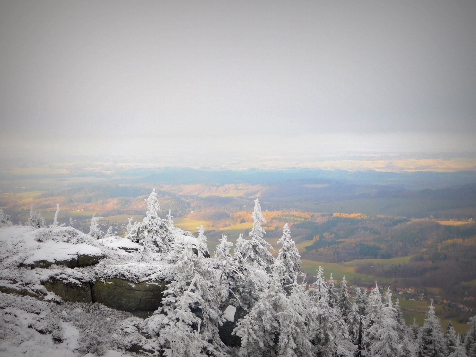 Panowała niemal absolutna cisza, przerywana jedynie naszym oddechem i przesypującymi się drobinkami śniegu po grzbietach. Widoki z wyższych partii Izerów zapierały dech w piersiach: białe, rozległe połacie i ośnieżone szczyty układały się w krajobraz przypominający daleką północ. W oddali wyróżniały się majestatyczne skały Frydlantskiego Cimbuří, otulone gęstą warstwą śniegu niczym strażnicy zimowego królestwa.