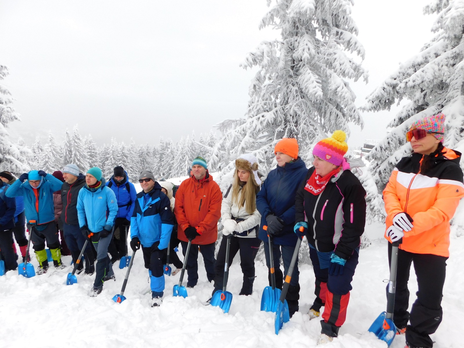Jednym z najważniejszych elementów naszego wyjazdu były warsztaty lawinowe im. „Sokoła” (Andrzeja Sokołowskiego) w schronisku „Strzecha Akademicka” koło Karpacza. To szkolenie uświadamia, jak ogromne znaczenie ma wiedza, refleks i właściwa kolejność działań w sytuacjach ekstremalnych. Część teoretyczna pozwoliła zrozumieć mechanizmy powstawania lawin oraz zasady bezpieczeństwa w górach zimą, jednak to ćwiczenia praktyczne okazały się najcenniejsze.