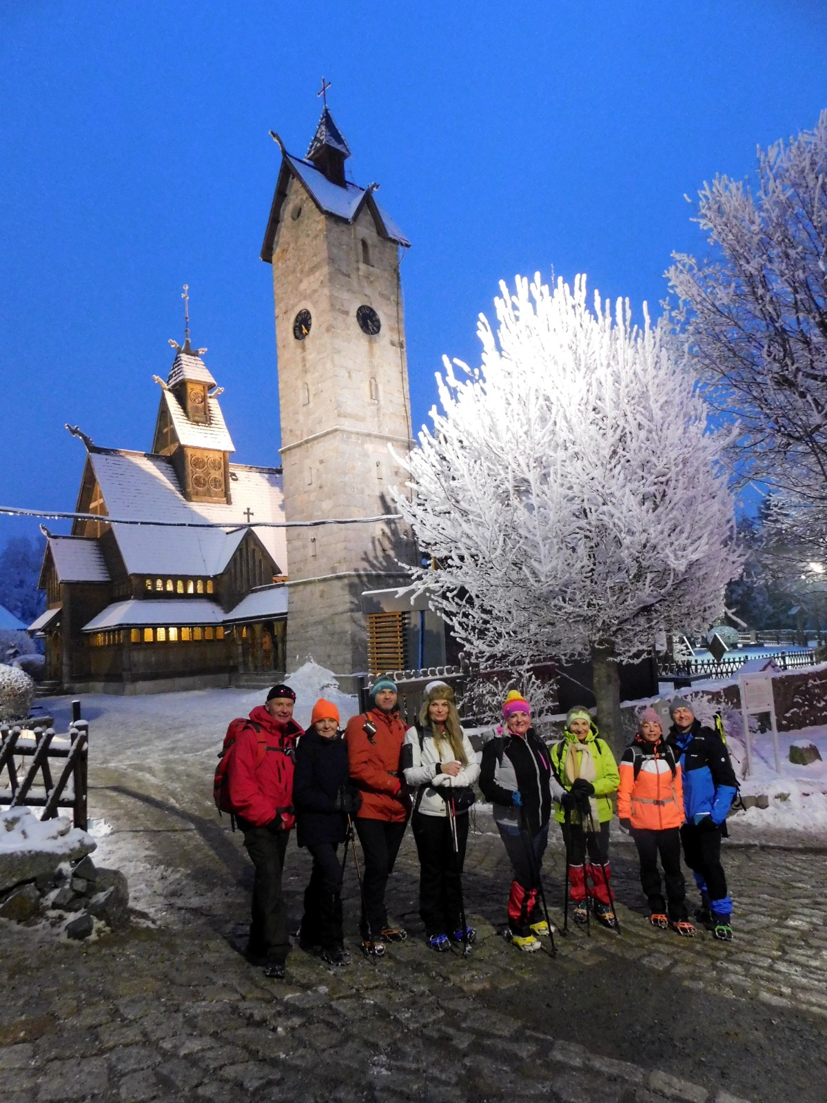 Drugi dzień przyniósł nieco inny, choć równie intensywny klimat. Wybraliśmy się na spacer w kierunku zamku Chojnik – monumentalnych ruin wznoszących się ponad karkonoskimi lasami. Surowa przyroda, zimowy krajobraz i cisza gór stworzyły wyjątkową atmosferę. Mury zamku skrywają mroczne legendy, w tym historię Kunegundy, która słynęła z niezwykłej urody, ale i z twardego, okrutnego charakteru. Była dumna, wyniosła i nieznosząca sprzeciwu. Według legendy odrzucała kolejnych zalotników w sposób brutalny i bezlitosny. Każdemu, kto starał się o jej rękę, stawiała zadanie niemal niemożliwe do spełnienia: musiał konno objechać wąską, skalistą ścieżkę biegnącą tuż przy przepaści wokół murów zamku.
