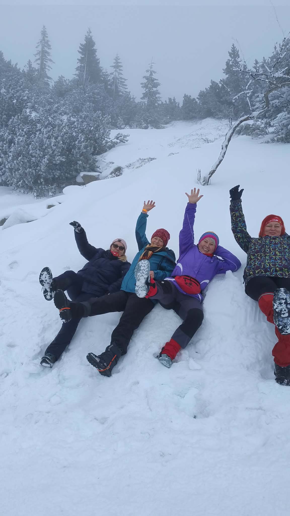 Wieczór spędziliśmy w schronisku Samotnia, gdzie w radosnej atmosferze świętowaliśmy Walentynki, dzieląc się wspomnieniami i planami kolejnych wypraw. Następnego dnia wyruszyliśmy w dalszą drogę w kierunku Luční bouda, a następnie czerwonym szlakiem do Špindlerůvego Mlýnu.