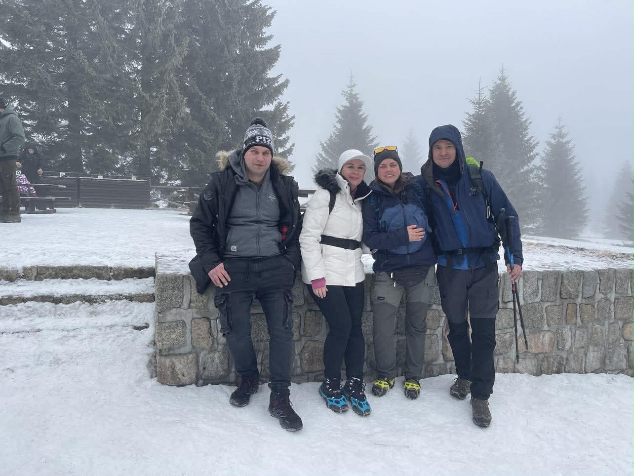 Naszą wędrówkę rozpoczęliśmy przy Świątyni Wang, skąd szlak prowadził przez ośnieżone polany i gęsty, świerkowy las. Drzewa były pokryte grubą warstwą szadzi i lodu, a ich gałęzie uginały się pod ciężarem zimowego pancerza. Każdemu krokowi towarzyszył charakterystyczny skrzyp śniegu pod butami, a powietrze było rześkie, czyste i przesycone górską ciszą. Zima ukazała tu swoje prawdziwe oblicze – surowe, ale jednocześnie niezwykle piękne.