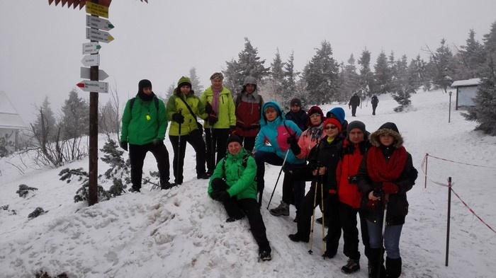 Drugiego dnia przywitał nas śnieg. Ciepło ubrani ruszyliśmy zielonym szlakiem na Smrk (1124 m n.p.m.). Najwyższy szczyt czeskich Gór Izerskich jest częścią Smrčskiej hornatiny / Vlašskeho hřebena. Początkowo trasa była łatwa i przyjemna, ale z każdym kilometrem, było coraz trudniej. Głęboki śnieg utrudniał marsz. Brodząc w nim po kolana przez 4,5 godziny dotarliśmy na wierzchołek. Niestety gęsta mgła uniemożliwiła nam podziwianie pięknych widoków na Góry Izerskie, Karkonosze, Grzbiet Jesztedzki oraz Góry Łużyckie, które można zobaczyć z wieży widokowej tu stojącej. Choć zmęczeni lecz szczęśliwi - pomaszerowaliśmy czerwonym szlakiem do schroniska na Stogu Izerskim (1107 m n.p.m.). Tutaj zjedliśmy ciepły posiłek i tak wzmocnieni zeszliśmy zielonym szlakiem - łatwym i przyjemnym - do Czerniawy-Zdroju. Zejście zajęło nam tylko 1 godzinę.