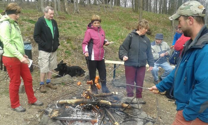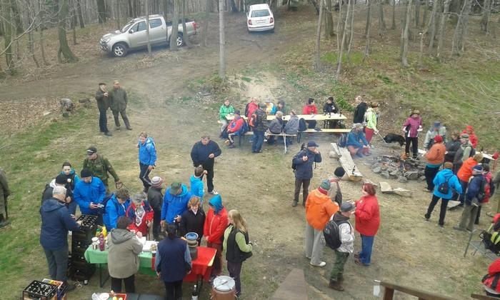 Sobotnie, poranne spotkanie na Guślarzu/Vyhledach - było miło, atmosfera międzynarodowa, cieplutka, ognisko "przygrywało" do wspólnego biesiadowania i rozmów na temat dalszego zagospodarowania okolic Jasnej Góry i Vitkova....