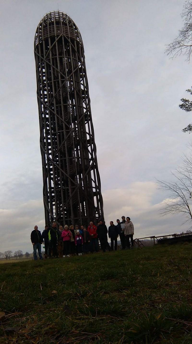 Następnym celem naszej wędrówki była wieża widokowa. Więcej informacji o powstaniu wieży i jej parametrach technicznych przeczytać warto w artykule Rozhledna Heřmanice.