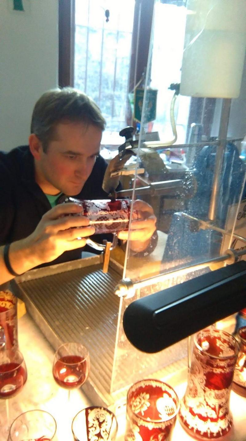 Na koniec naszej miłej wycieczki wstąpiliśmy do małej manufaktury szklanej „Spider Glass”. Jej właścicielem jest Josef Novotny, który osobiście nas przywitał i zaprosił do obejrzenia wystawy. Chętnie skorzystaliśmy, oczywiście po opłaceniu niewygórowanego wstępnego (40 KČ).