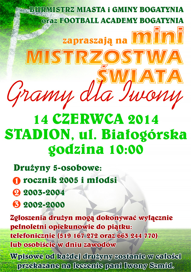 Burmistrz Miasta i Gminy Bogatynia oraz Football Academy Bogatynia zapraszają na Mini Mistrzostwa Świata – turniej dla drużyn 5-cio osobowych dla dzieci z roczników: