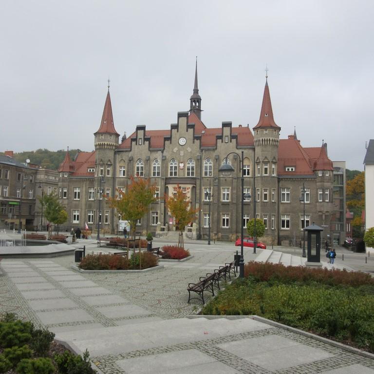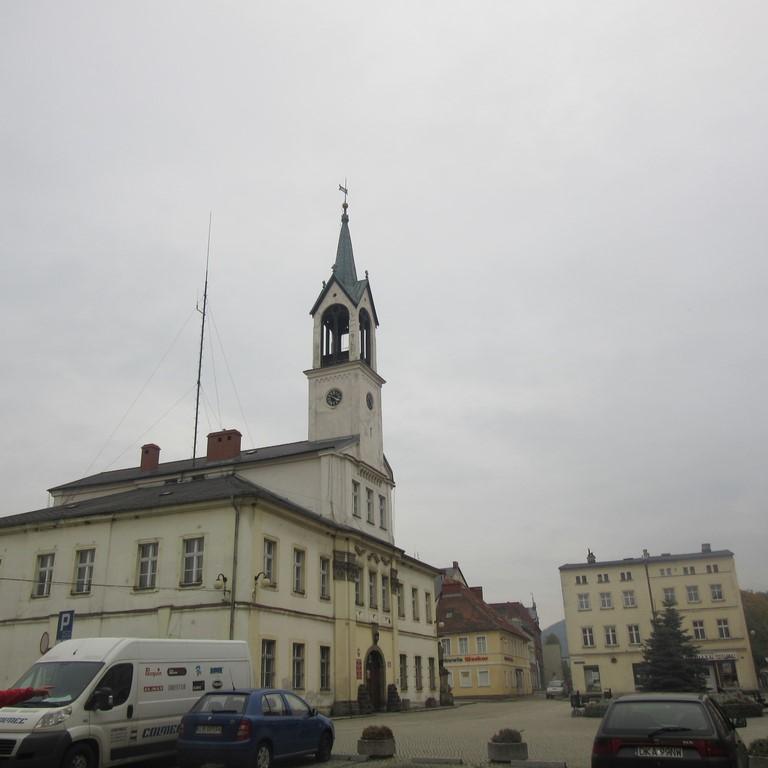 Z przewodnika dowiedzieliśmy się, że miasto powstało w XIII stuleciu i od początku związane było z krzeszowskimi cystersami. Zapewne dlatego najważniejszym zabytkiem Lubawki jest parafialny kościół z XV wieku p.w. Wniebowzięcia NMP. Wielokrotnie przebudowany posiada bogato zdobione barokowo-rokokowe wnętrze. Szczególną uwagę warto zwrócić na XVIII-wieczny ołtarz główny dłuta J. Lachela oraz chrzcielnicę i drewnianą ambonę. Rynek w Lubawce, jak przystało na centralny punkt miasta, otoczony jest przez bardzo ładne kamienice podcieniowe z XVIII wieku, świadczące o handlowych tradycjach miejscowych płócienników. Z wyrobu płótna bowiem miasto słynęło przez wieki. Wzrok nasz przykuł klasycystyczny ratusz zbudowany w latach 1723-26, i dziś mieszczący siedzibę władz miejskich. Jego portal zdobi herb miasta, a w narożniku osadzona jest figura czeskiego świętego Jana Nepomucena.