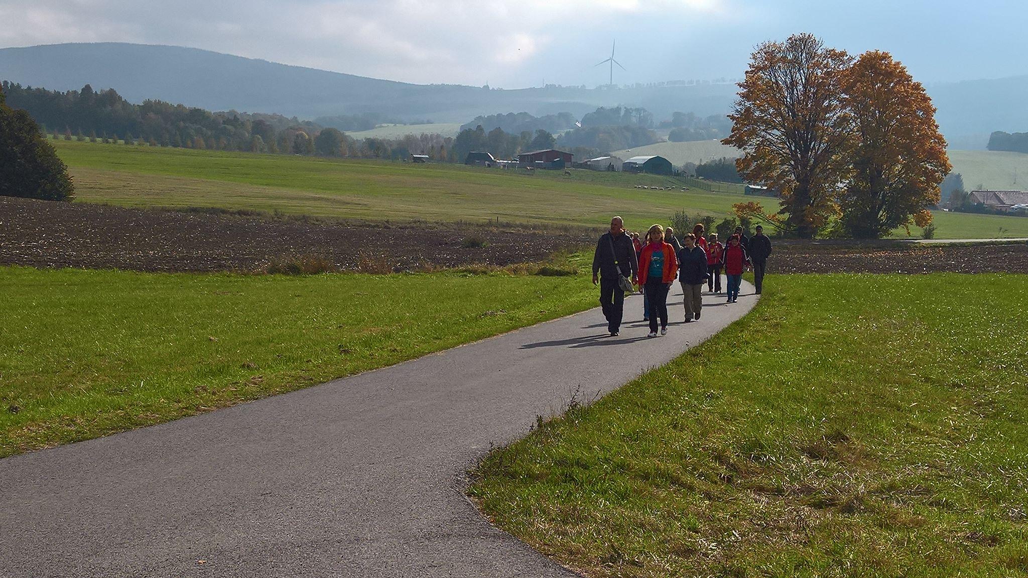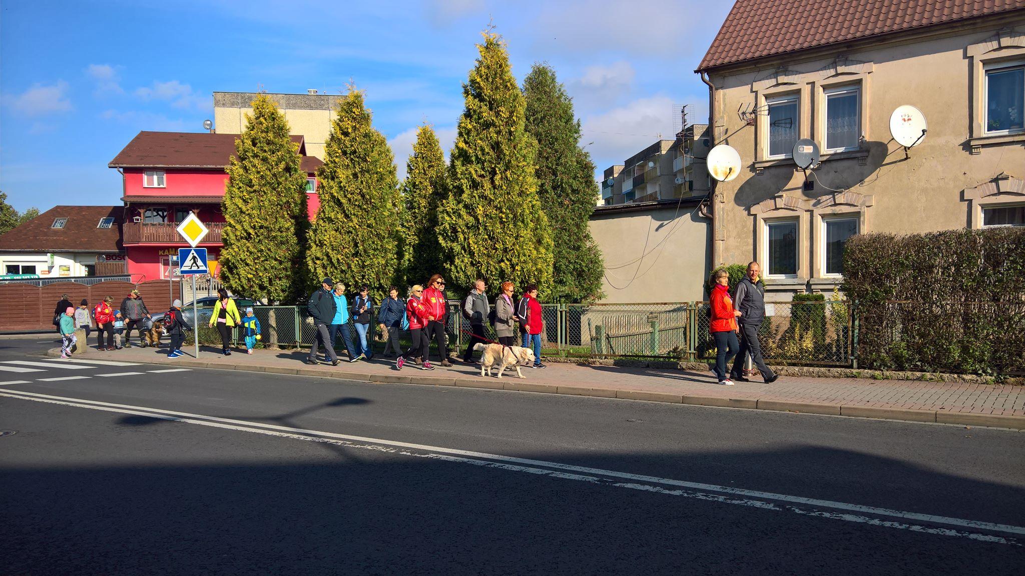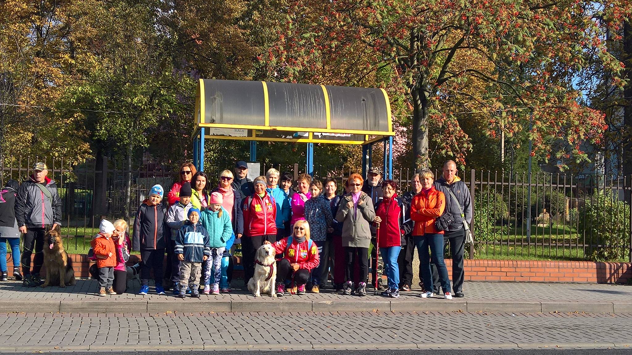 W sobotę 22 października o godzinie jedenastej pod liceum zebrała się 31- osobowa grupa z licznym gronem dzieci. Najmłodszy uczestnik Julek miał 2,5 roczku. Trudno było uwierzyć, że sobota przywitała nas piękną, słoneczną pogodą, tym bardziej, że wcześniej prawie codziennie padał deszcz. Po zrobieniu sobie wspólnej fotki ruszyliśmy w kierunku Markocic. Po przekroczeniu granicy zatrzymaliśmy się na placu zabaw u naszej sąsiadki Hermanice. Zrobiliśmy sobie dość długi postój. Dzieci, a nawet dorośli chętnie korzystali z huśtawek na placu zabaw.