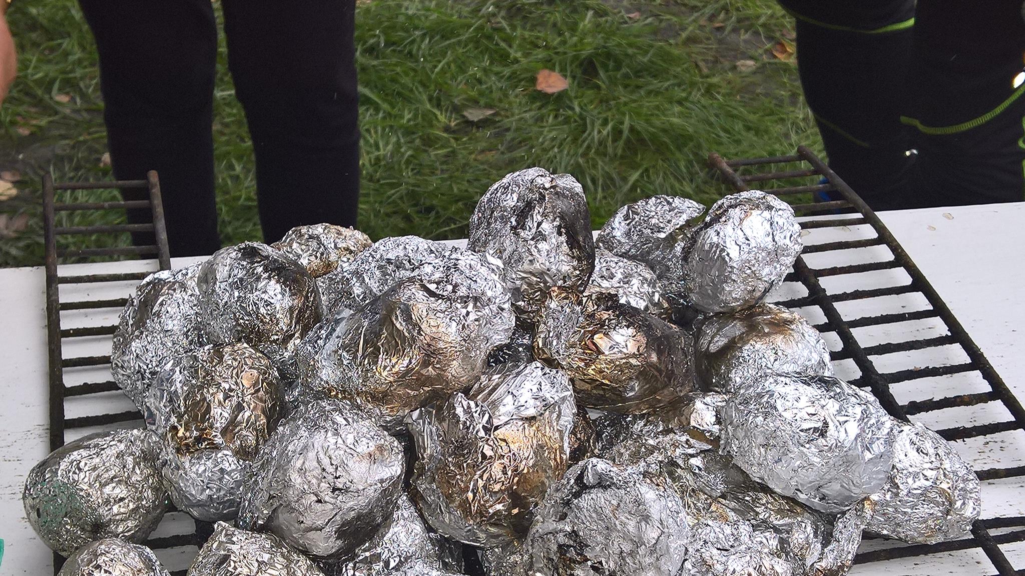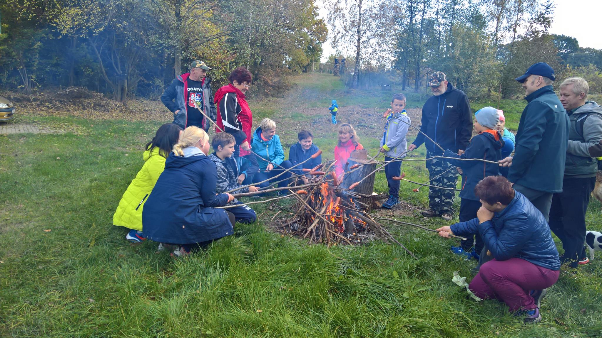 Kiedy dotarliśmy na Rodzinne Ogródki Działkowe "Jarzębinka" czekało na nas rozpalone ognisko. Helenka i Zbyszek zrobili nam bardzo dobrą owocową herbatkę, a nawt kawę. Po usmażeniu kiełbasek nasi koledzy upiekli nam ziemniaczki w bardzo gorącym ognisku. Dawno nie jedliśmy tak pysznych ziemniaków. Myślę, że dzieci jak również dorośli byli bardzo zadowoleni z naszej wspólnej imprezy.