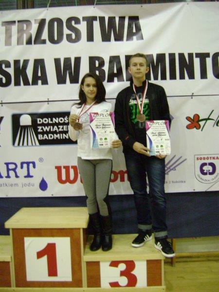 W kolejnej kategorii do lat 15 mieliśmy także 2 medale. Były to 2 brązy. Jeden z nich zdobyli Hanna Piotrowska i Dawid Wolkiewicz w grze mieszanej a drugi Dawid Twerd z kolegą z Wrocławia Jakubem Gurgulem w deblu chłopców.