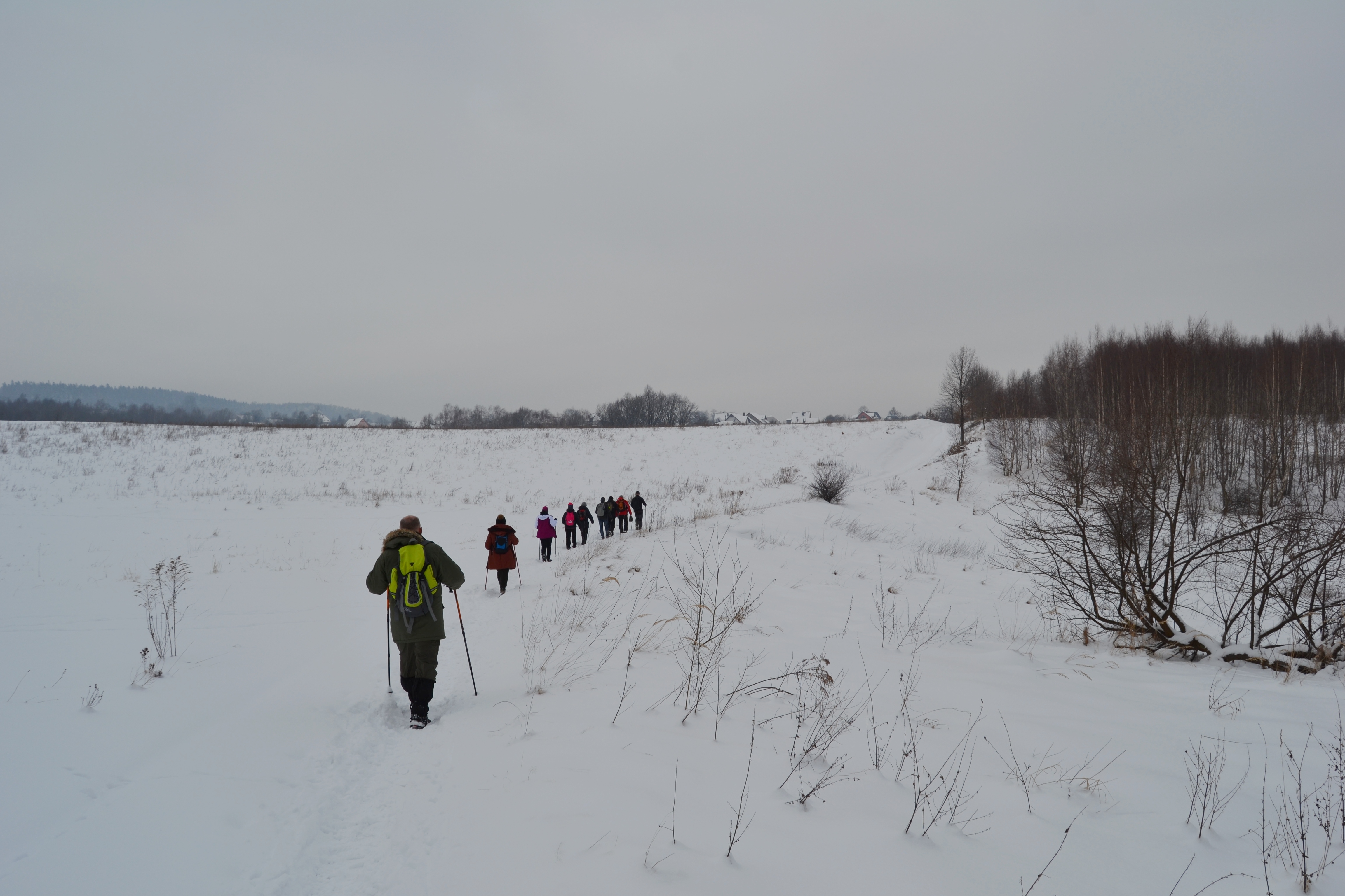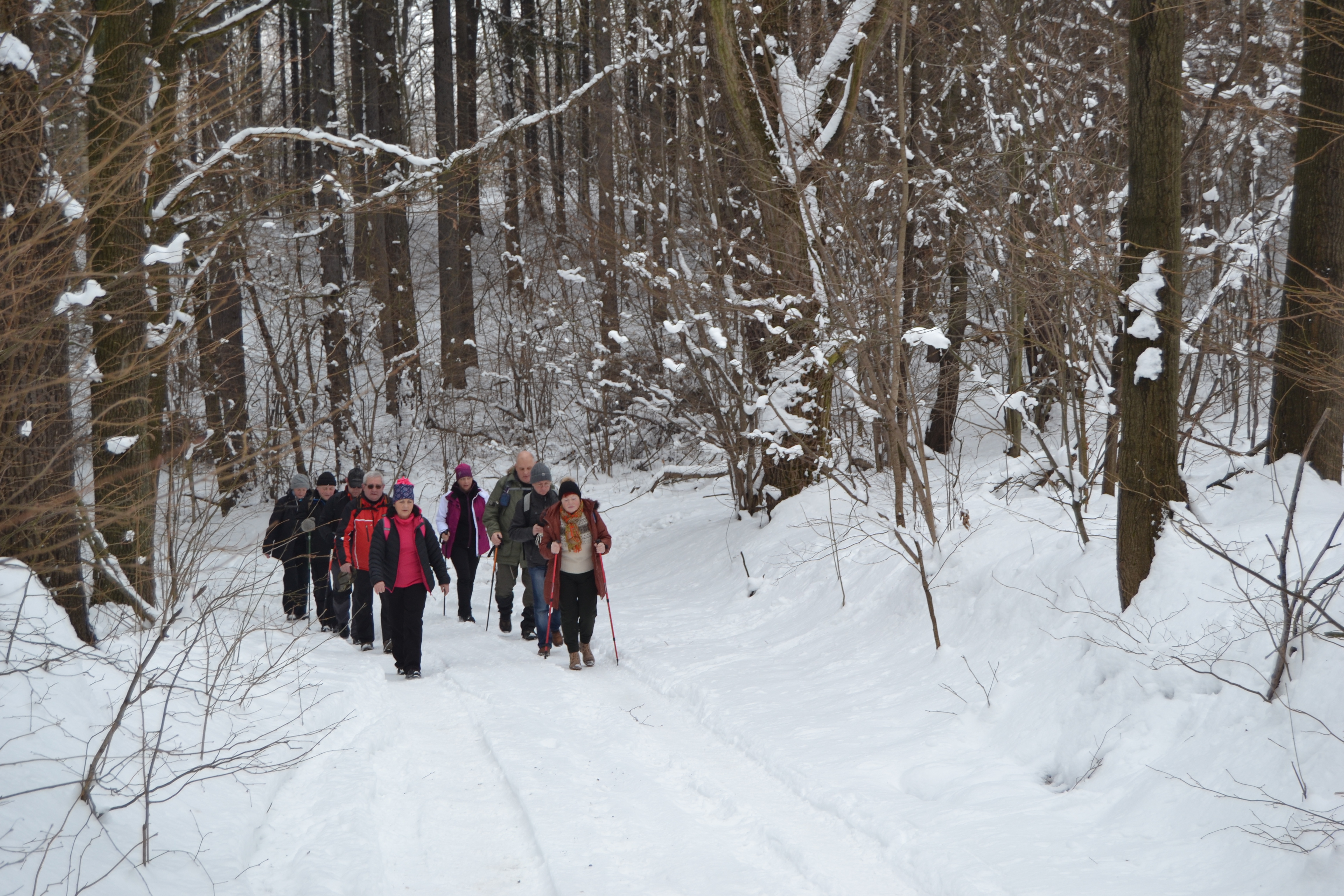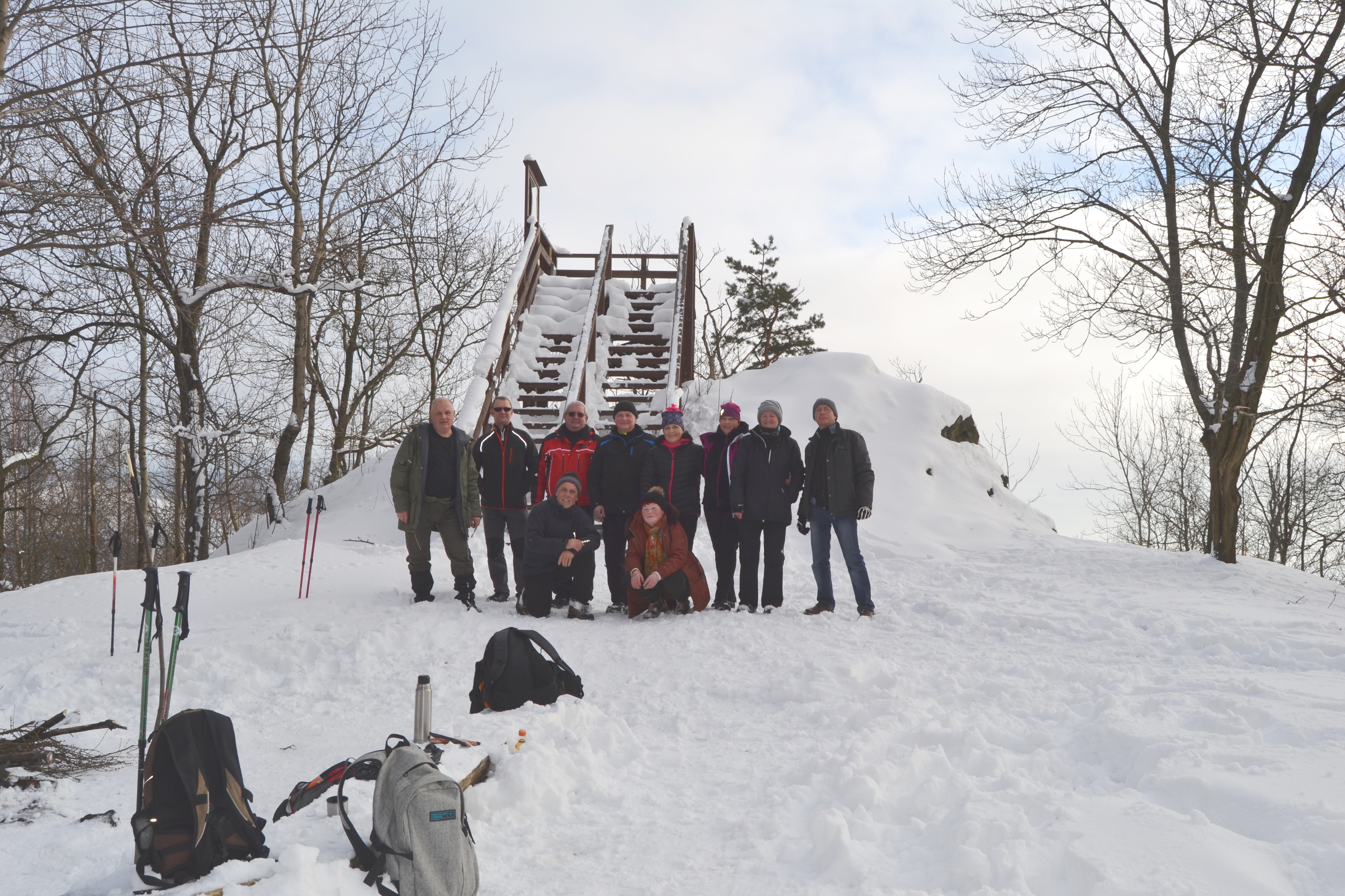 Pogoda wyjątkowa, piękna, słońce, śnieg, śmiech i zabawa to główny wątek wycieczki. Tuż za starą „sztachetówą” w Markocicach skręcamy w prawo i prościutko do lasu, na rozwidleniu znowu w prawo i jesteśmy w Jasnej Górze. Trzeba przyznać że postawione (przez wolontariat KWB Turów „Pomagamy”) znaki doskonale wskazują drogę. Przystanek tuż przy pomniku poległych żołnierzy, jest ławeczka i spotykamy innych wędrujących, można zagadać. Tak naprawdę to Jasna Góra pokazuje się z dobrej perspektywy turystycznej. Były z nami osoby, które nie widziały tak pięknych widoków. Tradycja mówi że na zakończenie należy zjeść przy wspólnym stole, tego niestety brakuje w Jasnej Górze ale ognisko na Guślarzu nam się udało i nikt nie wracał głodny. Ostatnia lipa opisana, zadanie wykonane, nasza radość nie do opisania.