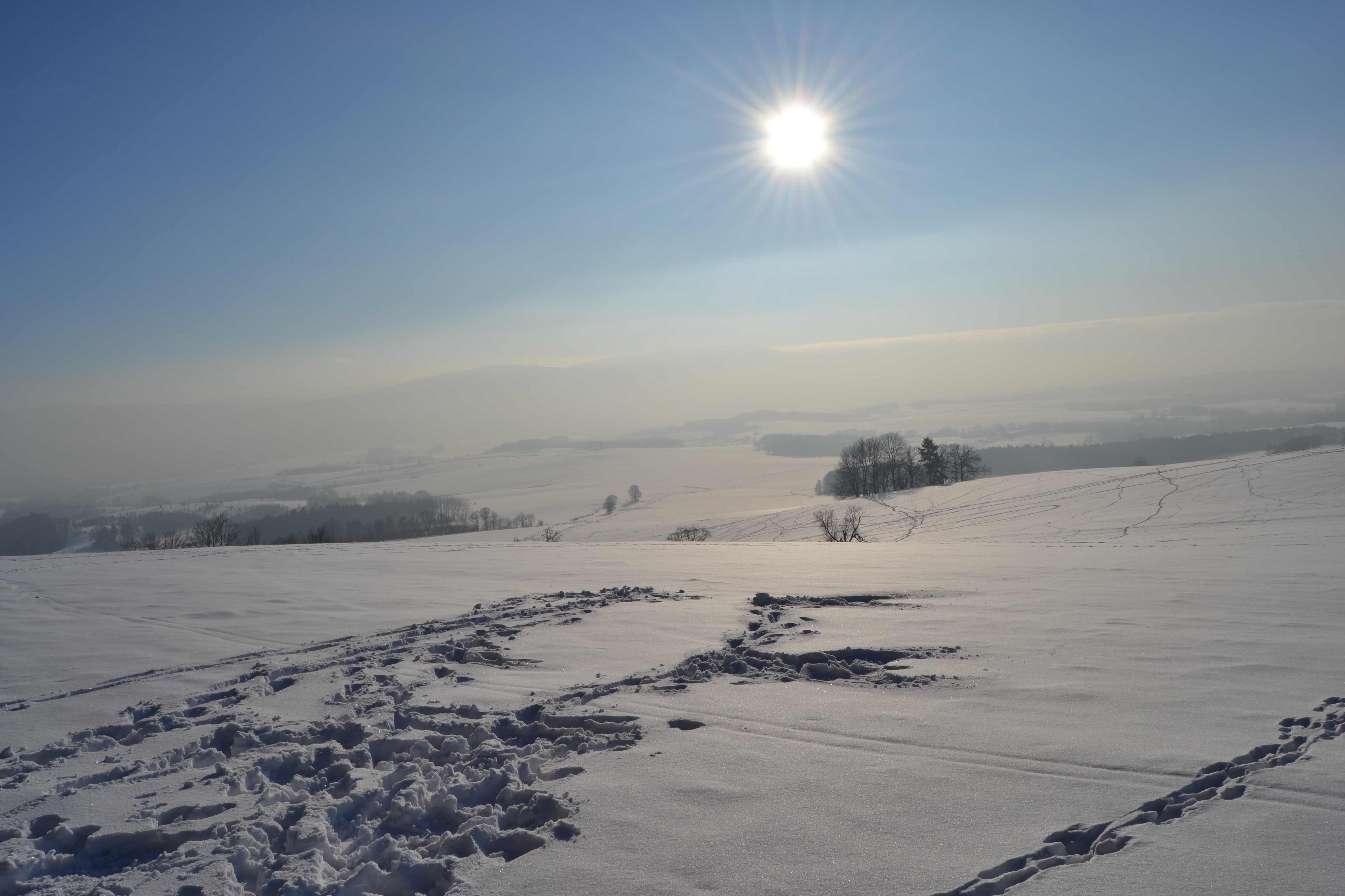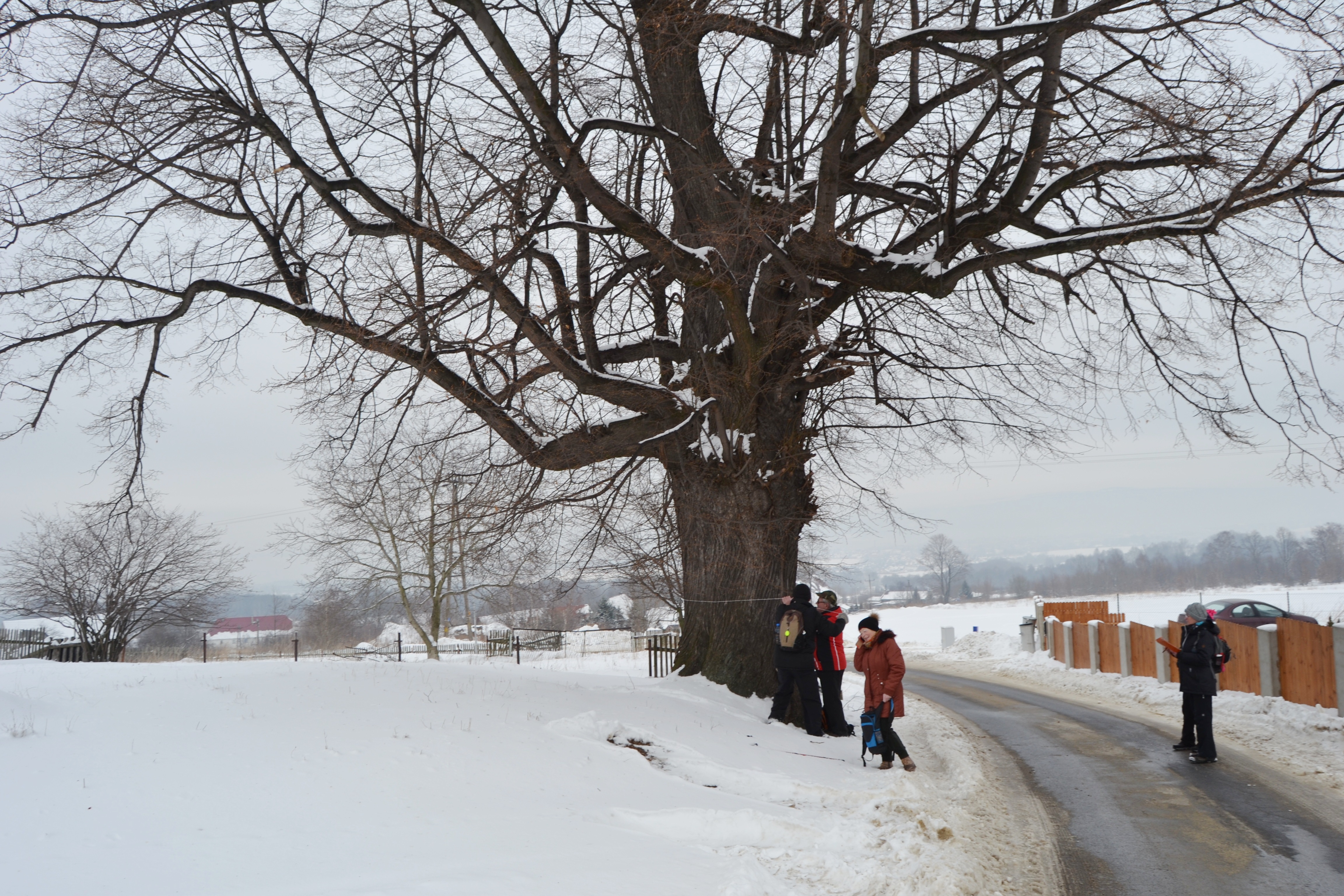 Tegoroczny zimowy styczeń zachęca do wypraw, dalsze trasy autem, my tym razem na Guślarz - pieszo. Ostatnie drzewo z projektu „Pomniki przyrody w gminie Bogatynia”, to samotna lipa w Jasnej Górze jako jedyna została nie zmierzona, rośnie na naszej trasie.