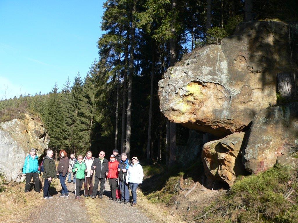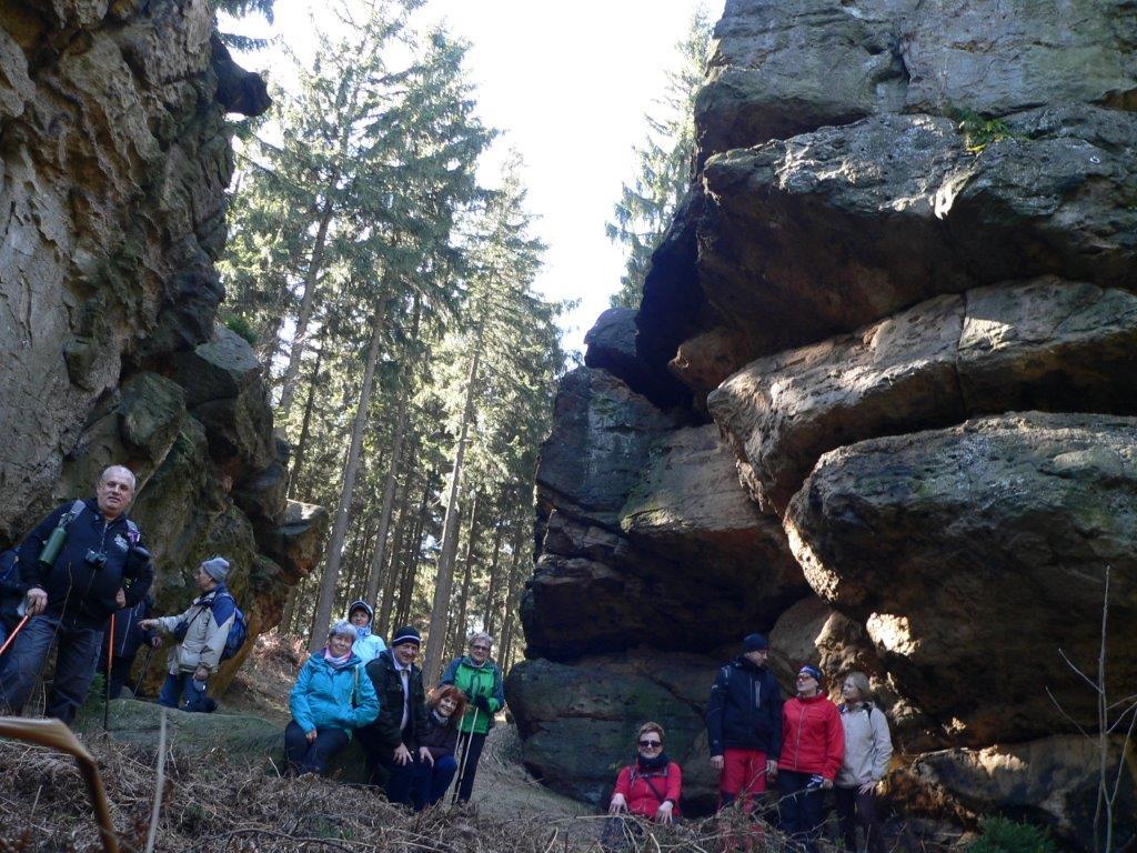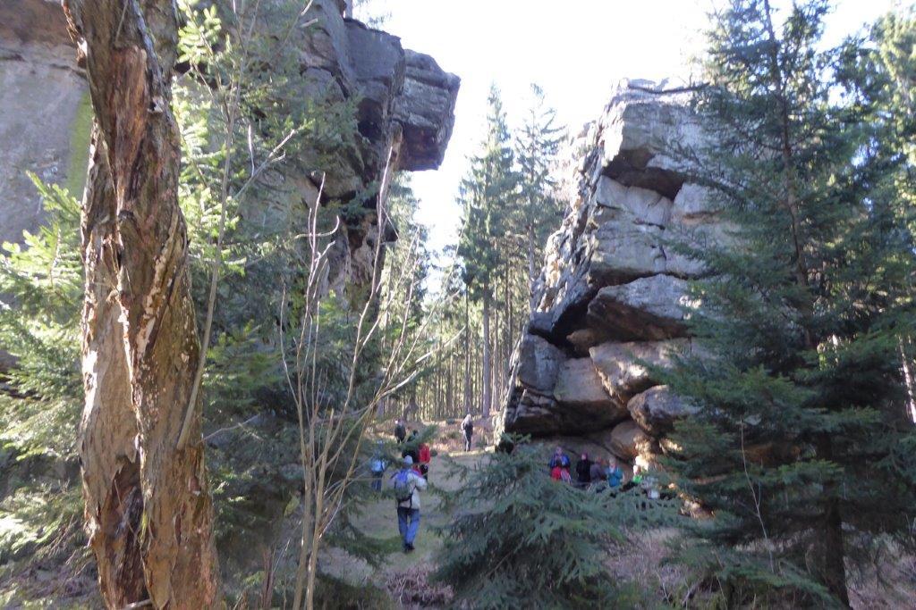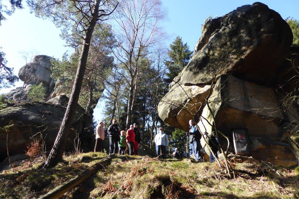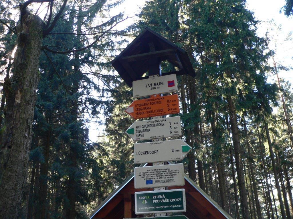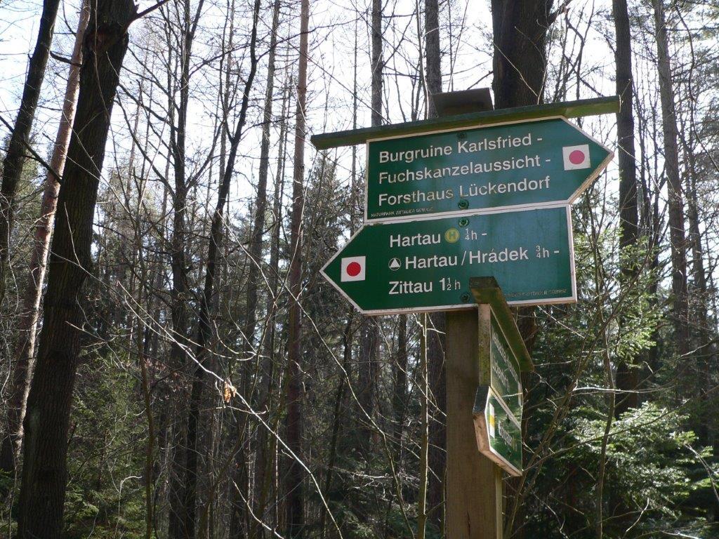 Rozpoczynamy od pozostawienia samochodów na parkingu w Czechach przy jeziorku Kristyna. Od tego miejsca krótko, między domkami w Hartau (D) idziemy w kierunku lasu na szlak. W lesie trasy oznakowane, jednak można nie zauważyć kiedy przekraczasz granice państwa. Tablice informacyjne w dwóch językach: czeskim i niemieckim. Miejsca spacerowe z ławeczkami i szeroką panoramą, dostrzegliśmy górę z wieżą Hohwald, która stała się tłem do zdjęć. Niespodzianki jakie nas spotkały po drodze to np. tabliczka z tekstem że wracał tędy Napoleon, punkt triangulacyjny, z którego rozpościerał się daleki widok aż po polską elektrownię w Zatoniu, Lwi buk z legendą, Czeska Brama, którą przekraczaliśmy już kolejny raz, ruiny niewiadomego zamku i wiele wyniosłych kamieni i skał, na które próbowaliśmy się wdrapać. Więcej informacji zdobędzie jeśli sami tam pójdziecie.