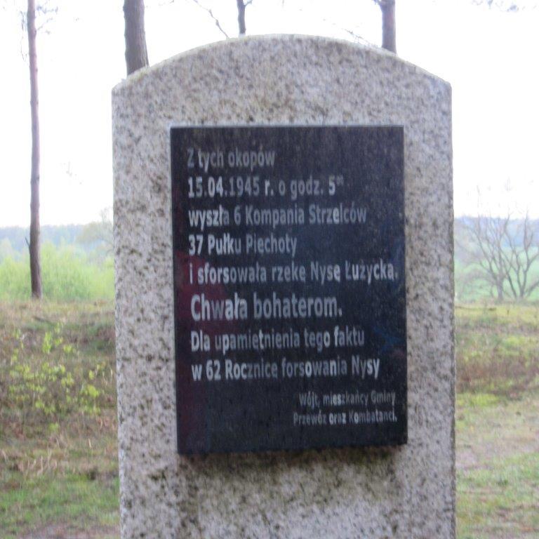 Wyruszyliśmy na trasę Wielkanocnej Dwudziestki. Wiodła nas pięknymi duktami leśnymi wzdłuż rzeki. Przydała się orientacja w terenie i wiedza przewodnicza. W wielu miejscach natknęliśmy się na tablice upamiętniające forsowanie Nysy Łużyckiej w 1945 roku. Część z nich ma opiekunów, ale wiele jest niestety zaniedbanych. W Toporowie znajduje się pomnik ku czci poległych żołnierzy Wojska Polskiego. Czczone tu są rocznice wal o Nysę Łużycką. W okolicy wciąż można odnaleźć pozostałości po okopach i schronach.