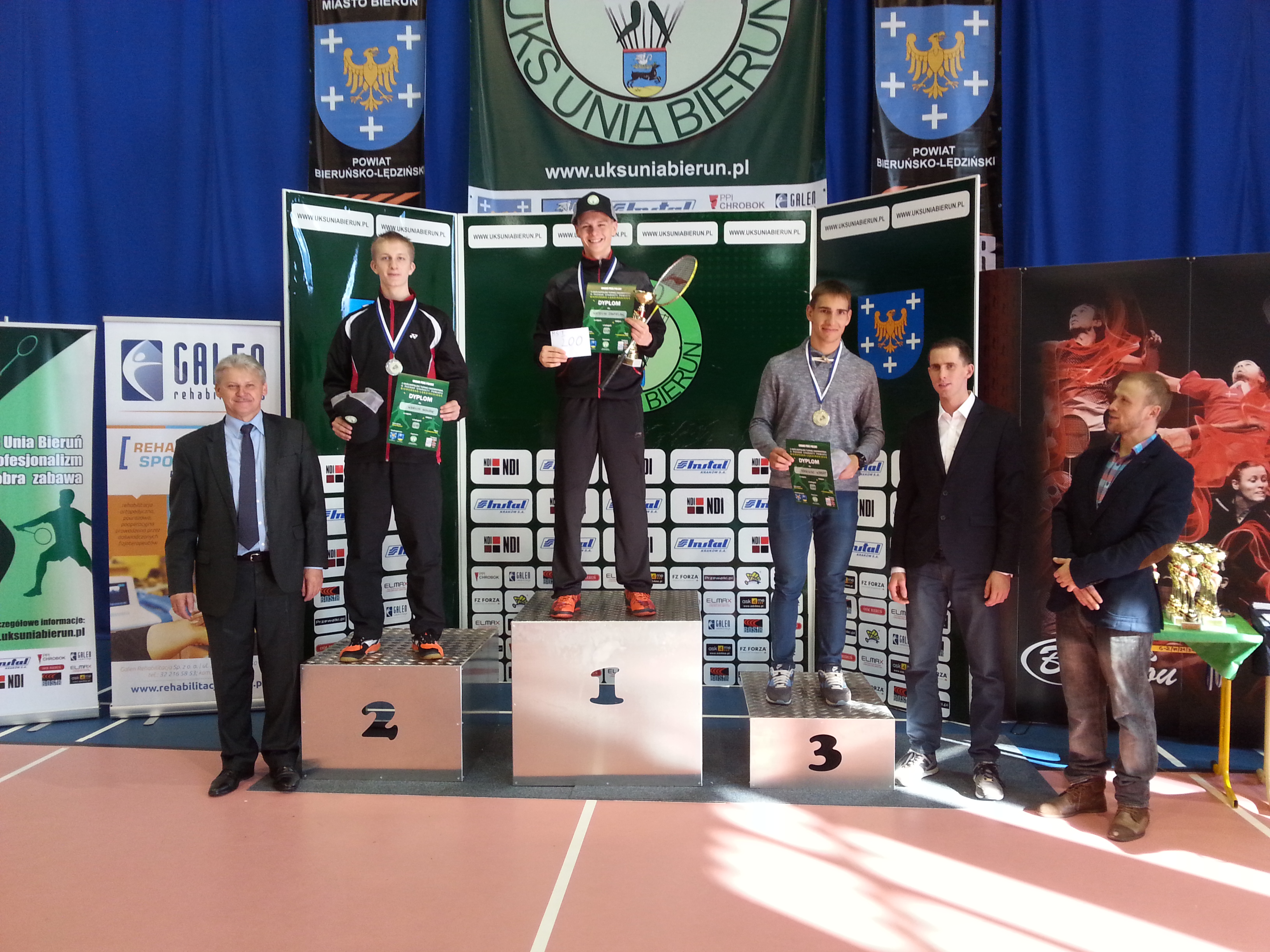 Pierwszy, złoty, wspólnie ze swoją stałą partnerką z KS Chojnik Jelenia Góra, Klaudią Sochą – zdobyli w grze mieszanej. Rozstawieni zostali z nr 2 ponieważ aktualnie zajmują 2 miejsce w krajowym rankingu. W grupie nie mieli żadnych problemów i spokojnie wygrali 3 mecze po 2:0 w setach. Po wyjściu z grupy już nie było tak lekko. Para, Smajda - Kutacha sprawiła dużo kłopotów i mecz trwał 3 sety. Rezultat jednak dla naszej pary, 21:18 w trzecim secie i gramy w finale. Mecz finałowy zasługiwał w swoim przebiegu na to miano, ponieważ dostarczył nie lada emocji. Nasi grali przeciwko Bielińska – Parysz (oboje z Bierunia) więc cała sala kibicowała swoim dlatego nasi mieli jednego przeciwnika więcej. Mecz był bardzo wyrównany, panowie dużo grali lotek na panie i decydowało to, która z nich popełni mniej błędów. W końcówce trzeciego seta było bardzo dramatycznie ponieważ nasi przegrywali już 18:20. Miejscowi nie udźwignęli jednak wyniku i nasza para wygrała 23 : 21! W ten sposób zdobyliśmy złoto w miksta w juniorach.