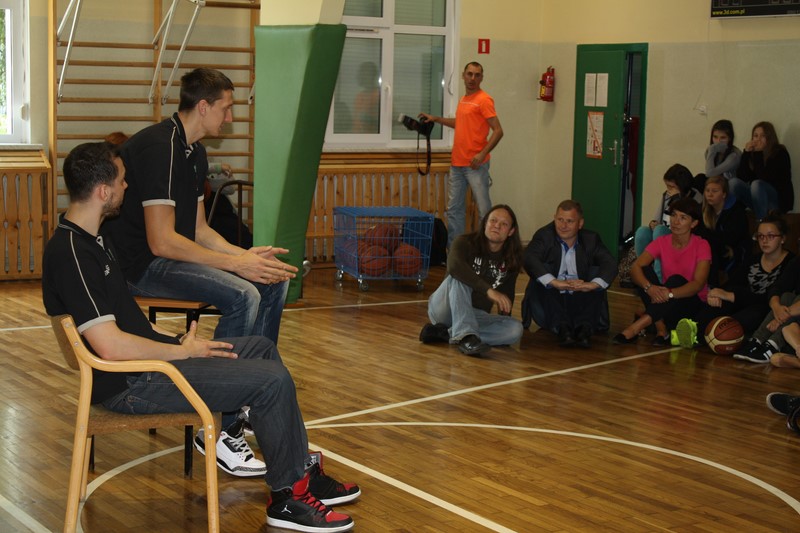 Uros Nikolić i Michał Chyliński opowiadali o karierze zawodniczej, specyfice treningu, stosowanej diecie. Uczniowie i nauczyciele mieli możliwość rywalizować w osobistych rzutach do kosza a rywalizację wygrał p. Andrzej Olek , nauczyciel wychowania fizycznego w LO. Spotkanie zorganizował Wicestarosta pan Mariusz Tureniec.