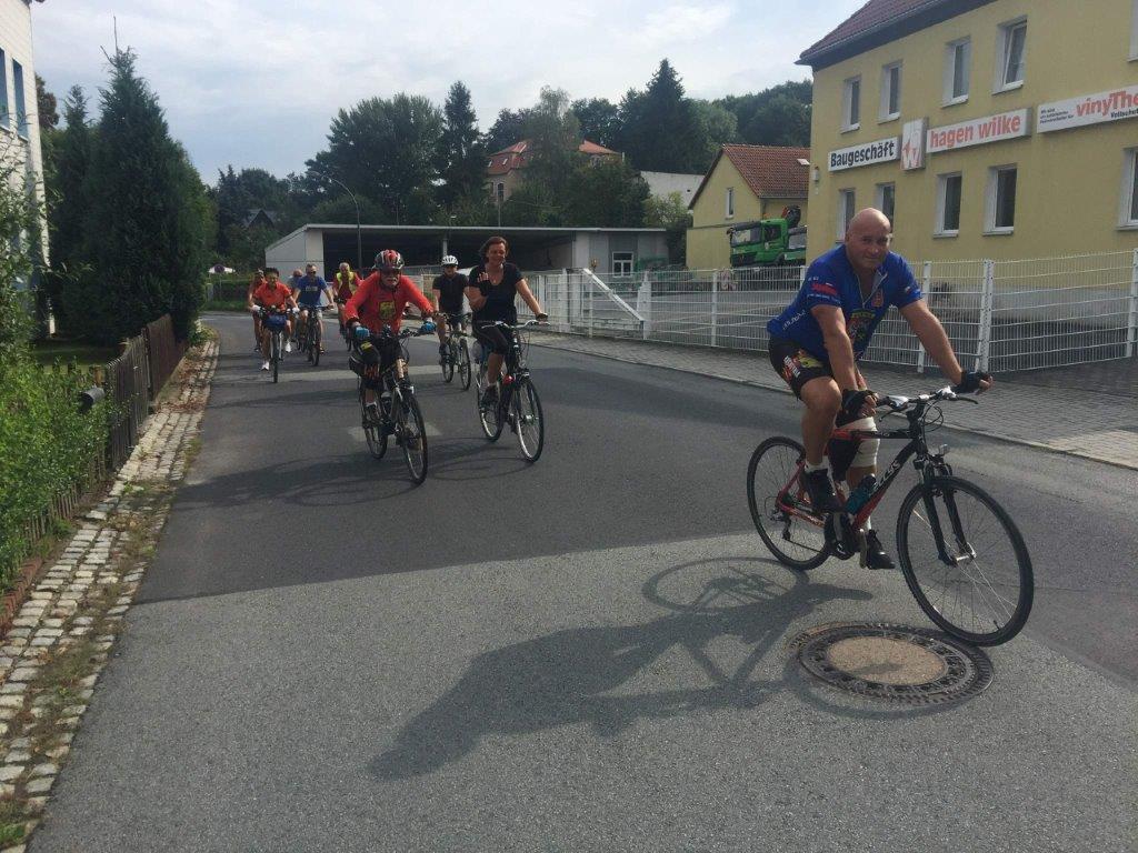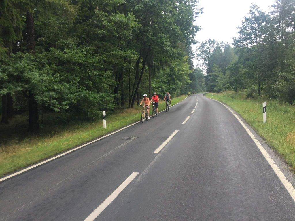 Na starcie pod UMiG o dziwo sporo kobiet a trasa jest trudna (górzysta). Pogoda nijaka ale na szczęście jest ciepło. Jedziemy przez Polskę – Opolno-Zdrój, Kopaczów do przejścia granicznego z Niemcami tj. Zittau. Następnie przez Olbersdorf do Jonsdorfu, cały czas po górkę ok. 9 km. W Jonsdorfie wjeżdżamy w piękną, szeroką, leśną drogę szutrową, prowadzącą do granicy z Czechami, tu już jest bardziej stromo, nachylenie od 4 do 15 %.