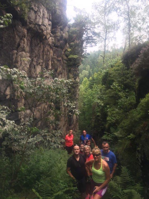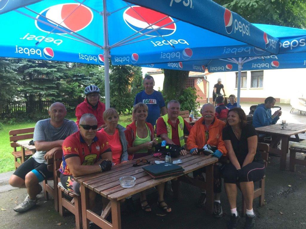 W drodze powrotnej postanowiliśmy, trochę zboczyć z wytyczonej trasy i podjechać na jonsdorfskie skałki. Wracamy, częściowo inną drogą przez Eichgraben, Hartau i do Czech, krótki postój na zalewie Kristýna w Hrádku, następnie Oldřichov, przekraczamy „zieloną” granicę i jesteśmy w Polsce. W dobrej kondycji po przejechaniu ponad 65 km w trudnym, górzystym terenie, dojechaliśmy do Bogatyni. Słowa serdecznego uznania dla Naszych Pań za to że nie „pękły” i dały radę.