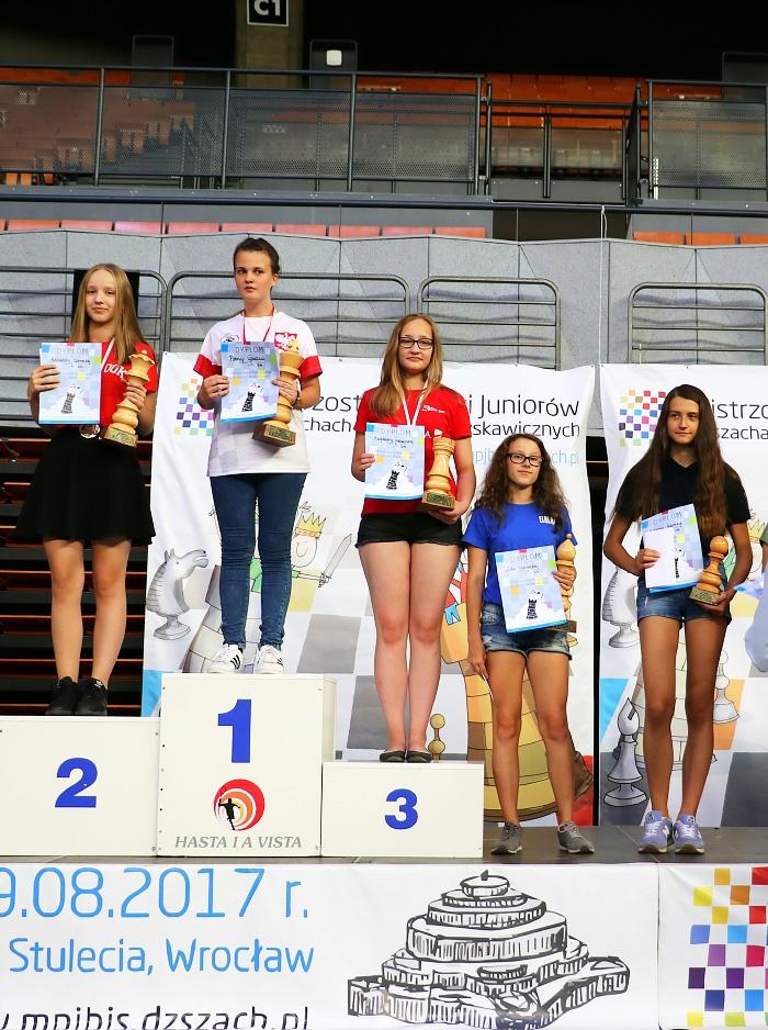 Warto wspomnieć również o bardzo dobrym występie Aleksandry na Mistrzostwach Polski Juniorów w Szachach Szybkich. Ola, podobnie jak srebrna i brązowa medalistka zdobyła 8 z 11 punktów. Niestety w tym przypadku pechowa dla naszej zawodniczki okazała się punktacja pomocnicza, która uplasowała ją na 4 miejscu.