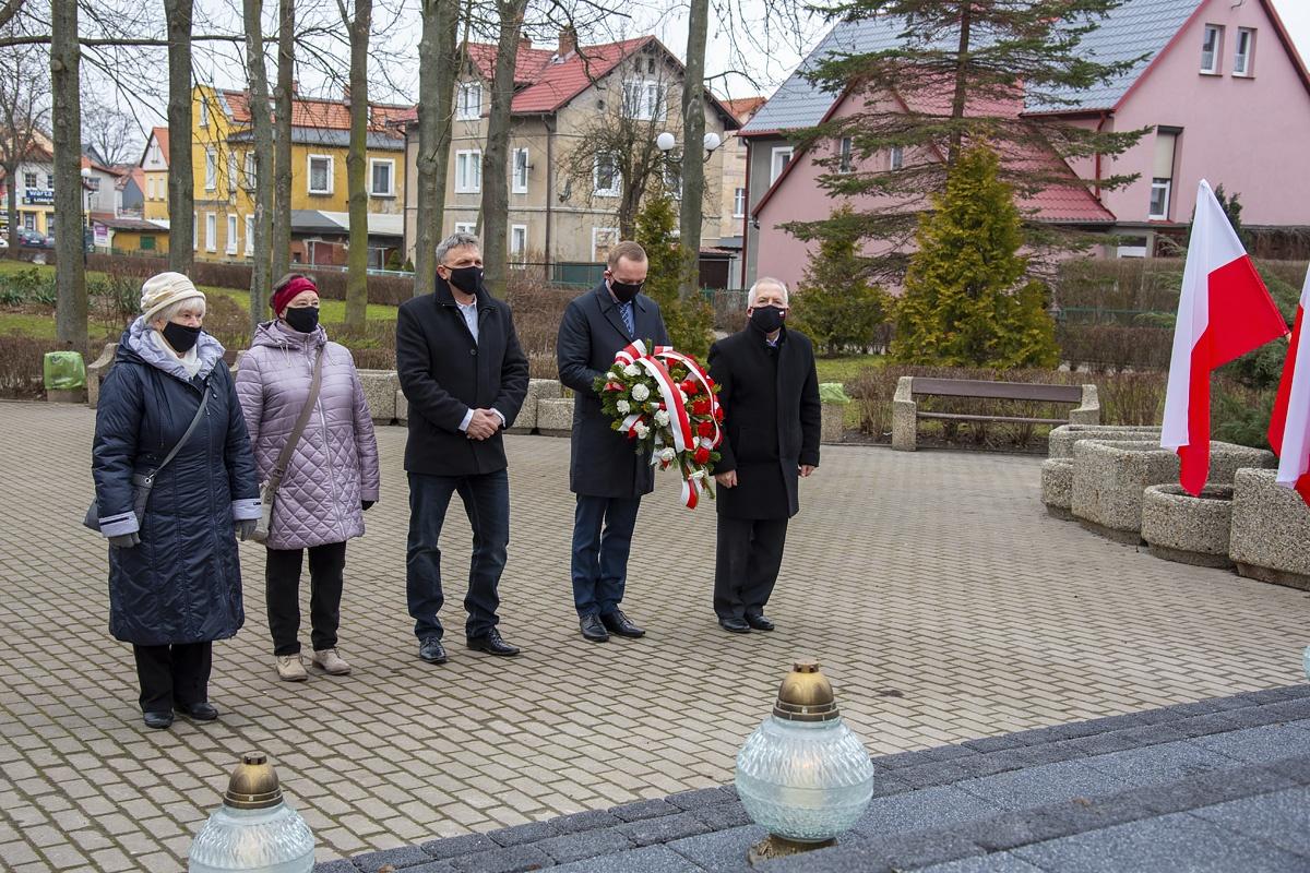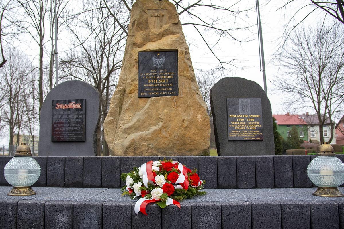 Następnie pełniący funkcję Burmistrza Miasta i Gminy Wojciech Dobrołowicz wraz z Przewodniczącym Rady Miejskiej Arturem Oliaszem oraz przedstawicielami bogatyńskich Sybiraków i Kombatantów złożył kwiaty pod pomnikiem w Parku im. Jana Pawła II. Jak powiedział w krótkiej przemowie burmistrz "W tym ważnym dla nas wszystkich dniu przypominamy o tym, że walka o niepodległość Polski nie zakończyła się w 1945 roku, ale za sprawą Żołnierzy Wyklętych trwała znacznie dłużej. Od 3 lutego 2011 roku, dzięki inicjatywie ustawodawczej ówczesnego prezydenta RP Lecha Kaczyńskiego, obchodzimy Narodowy Dzień Pamięci Żołnierzy Wyklętych".