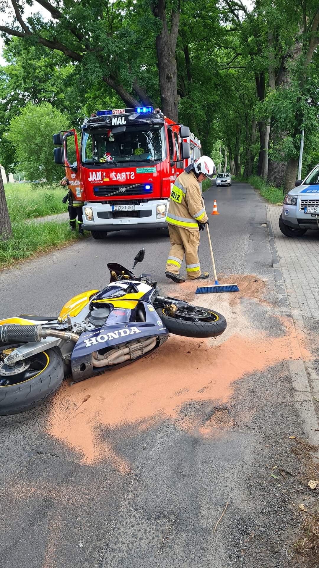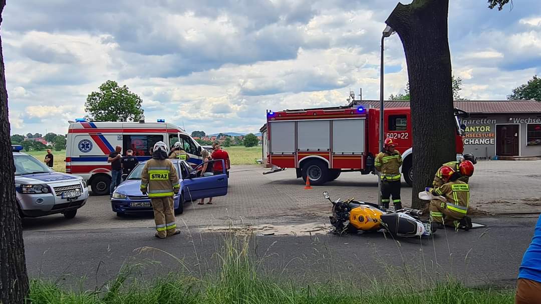 Wszystko miało miejsce dziś (12.06) około południa w okolicy stacji paliw Horex w Porajowie. Na miejscu pojawiły się służby medyczne, policja i straż pożarna, m.in. Ochotnicza Straż Pożarna w Porajowie. Poszkodowanemu kierowcy motoru medycy udzielili pierwszej pomocy i o własnych siłach opuścił ambulans. Sprawczyni zaś zostanie ukarana mandatem.