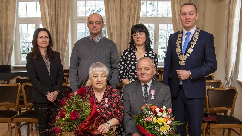 Jubileusz 50-lecia pożycia małżeńskiego był okazją do uhonorowania małżonków Medalami za Długoletnie Pożycie Małżeńskie nadawanymi przez Prezydenta Rzeczypospolitej Polskiej. Aktu dekoracji dokonał Burmistrz Miasta i Gminy Bogatynia Wojciech Dobrołowicz, który życzył także jubilatom długich i pogodnych lat życia w miłości, zdrowiu i szczęściu. Na zakończenie uroczystości małżonkowie otrzymali wiązankę kwiatów i okolicznościowy prezent.