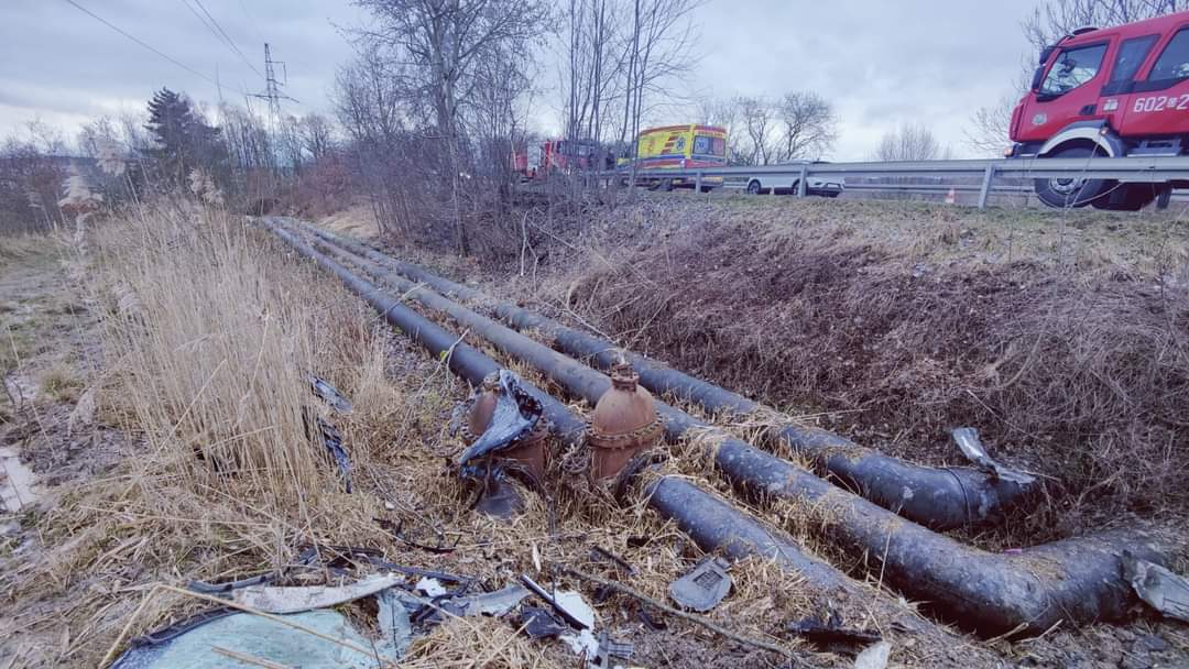Samochód osobowy wypadł poza jezdnię i uderzył w zawór instalacji wodnej, w wyniku czego cała prawa strona pojazdu została oderwana od auta. Osobę poszkodowaną przekazano przybyłemu na miejsce zdarzenia Zespołowi Ratownictwa Medycznego.