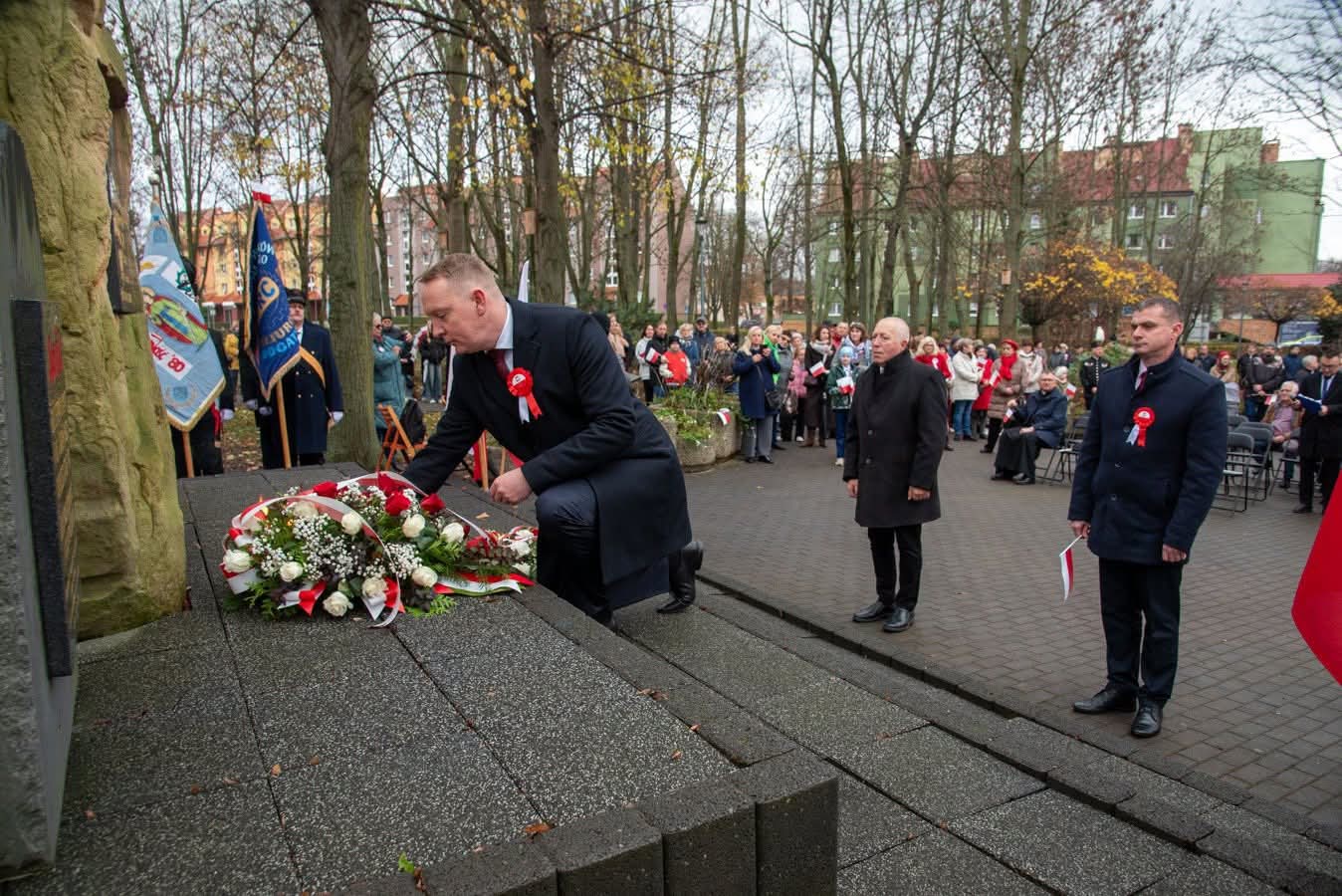 Po nabożeństwie, w uroczystym przemarszu, na czele z pocztami sztandarowymi i przy akompaniamencie Orkiestry Reprezentacyjnej Elektrowni Turów, uczestnicy przeszli do Parku im. Jana Pawła II. Tam, podczas głównej, patriotycznej uroczystości, oddano hołd wszystkim, dzięki którym możemy cieszyć się wolnością.