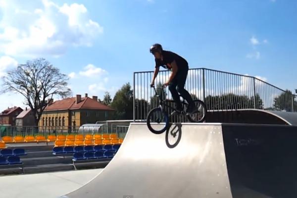 Tymczasem zobaczmy jak Mateusz wykorzystuje skatepark na otwartym powietrzu w promieniach letniego słońca: